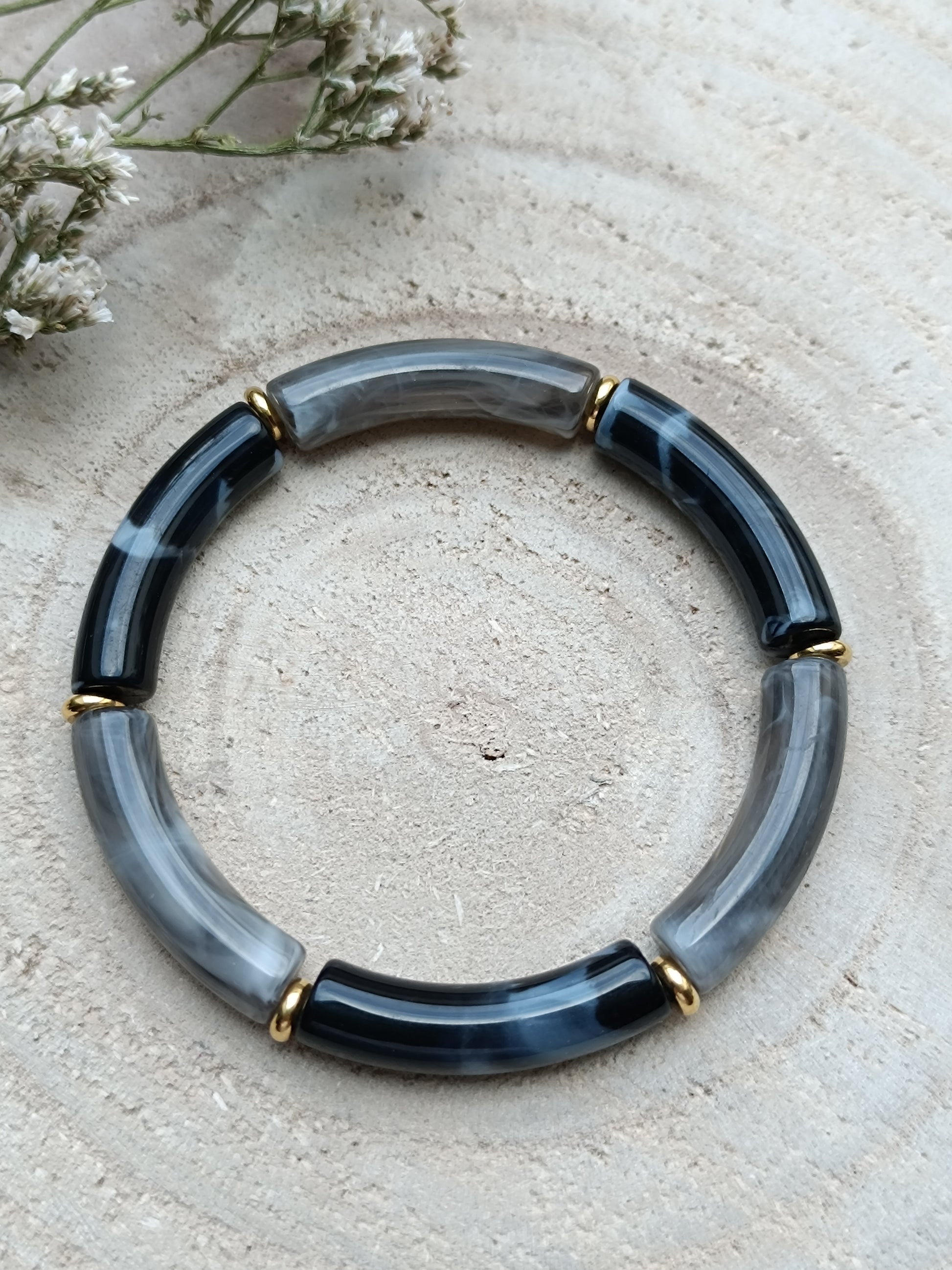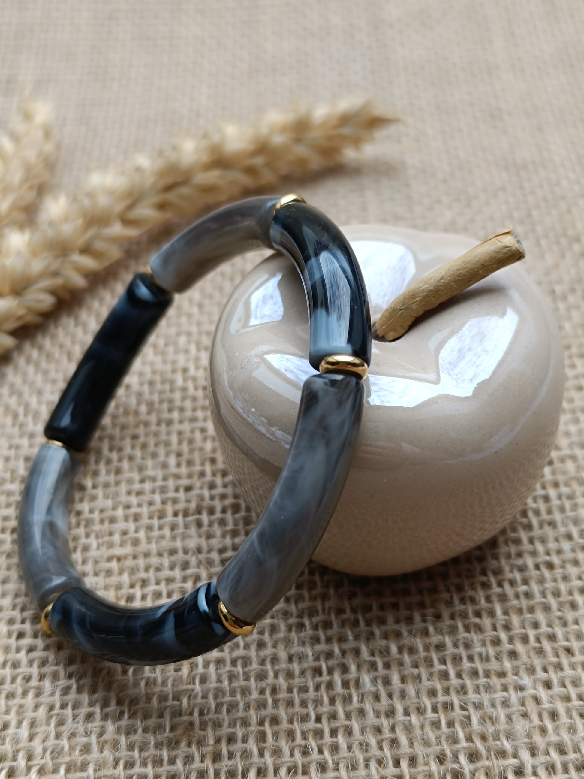 Bracelet élastique résine noir & gris