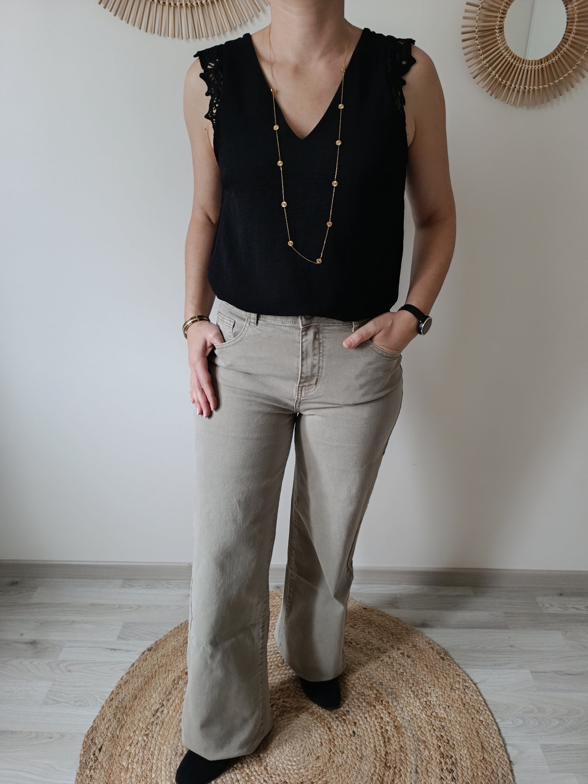 Jeans wide leg beige